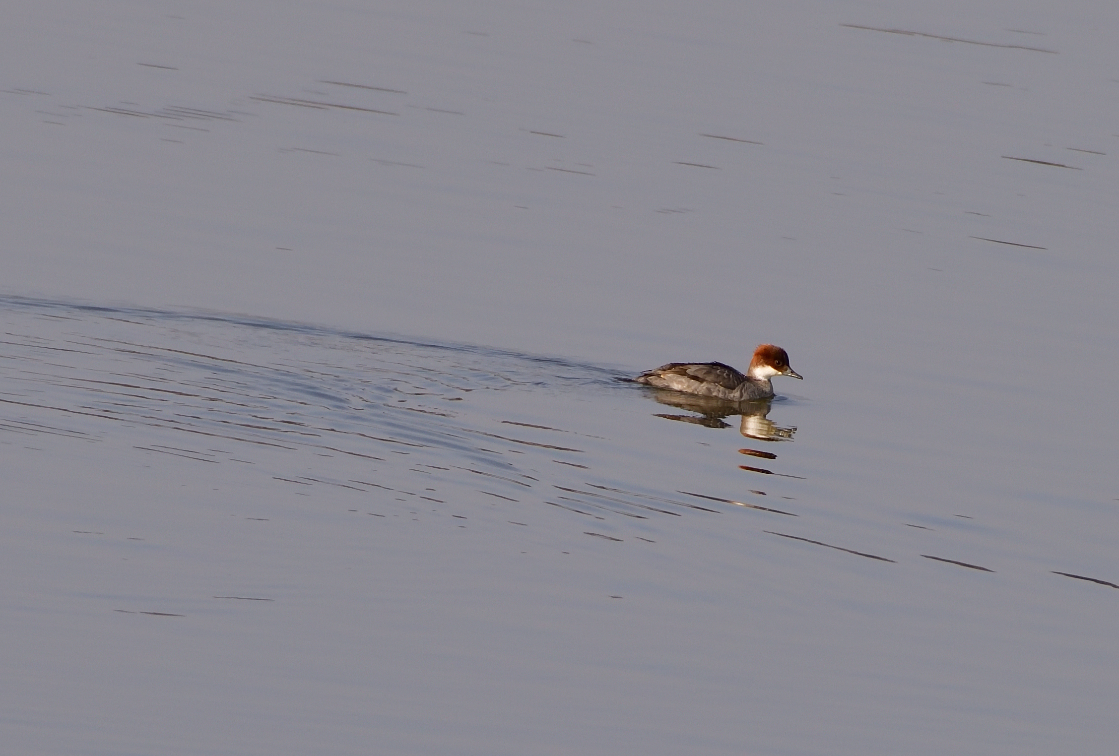 논병아리 같아 보이지만 얘는 흰비오리 암컷이다.