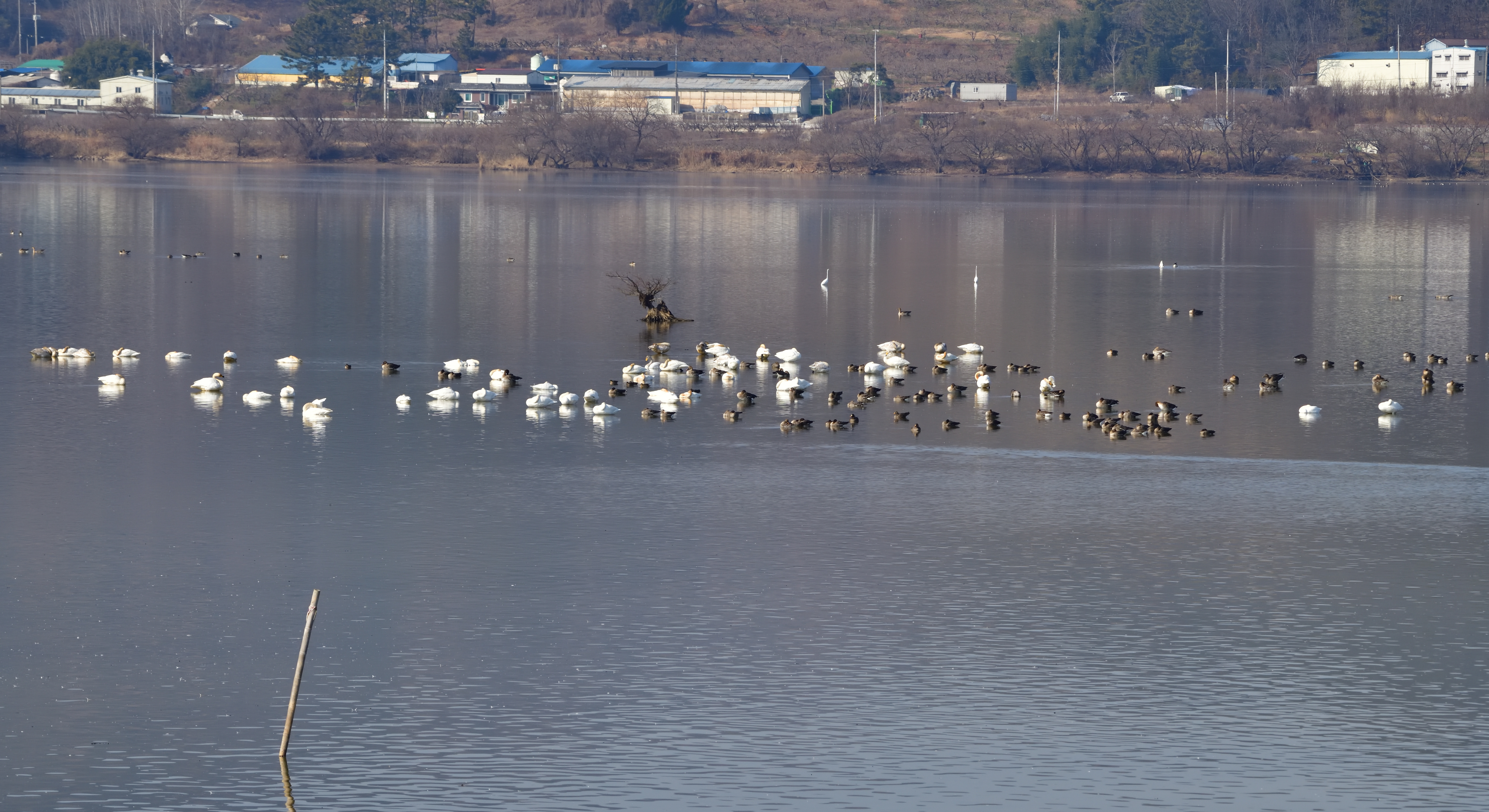 주남의 새가 있는 풍경. 주로 큰고니, 노랑부리저어새, 오리과 얘들~