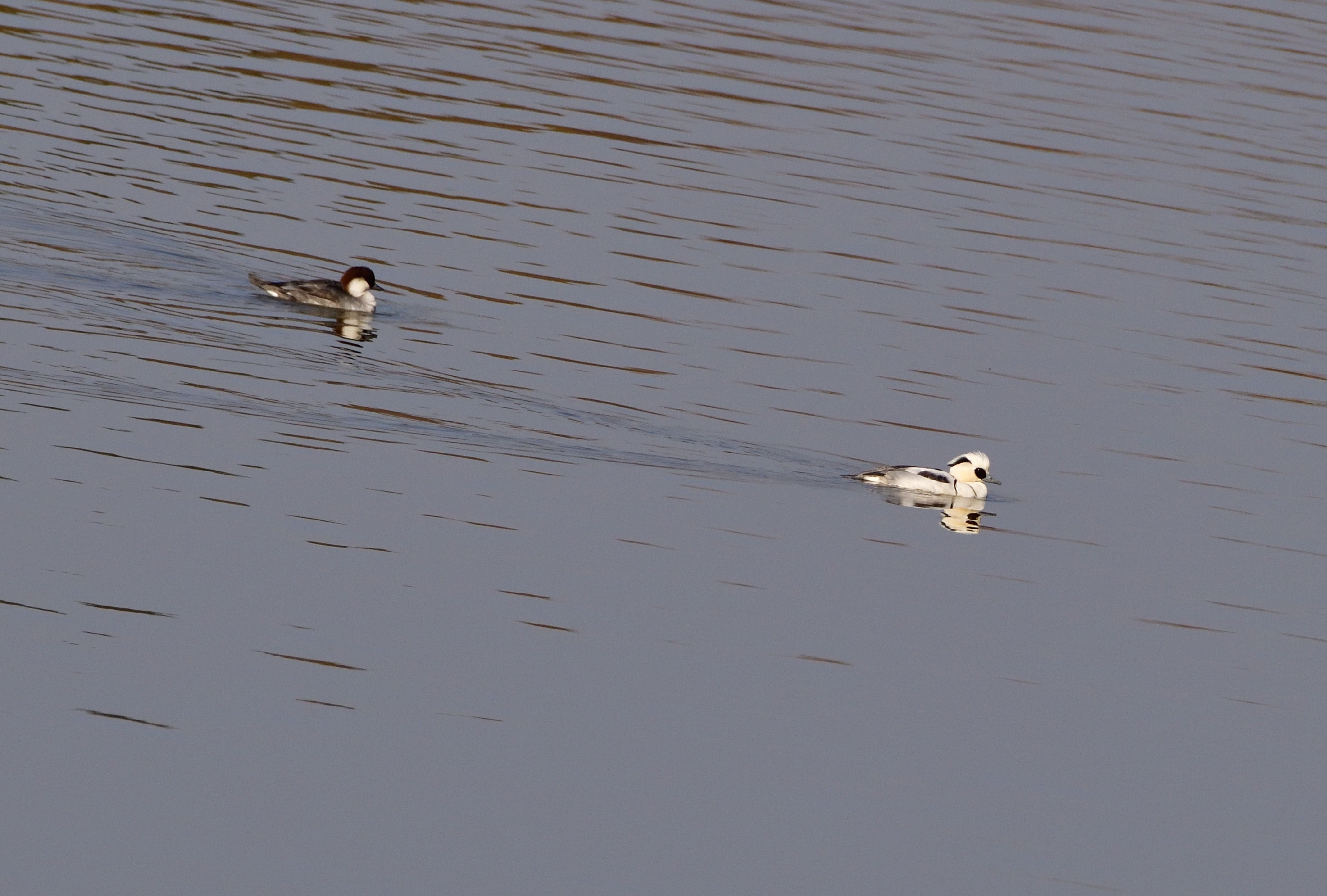 흰비오리 암.수(흰색 수컷, 뒤 암컷)